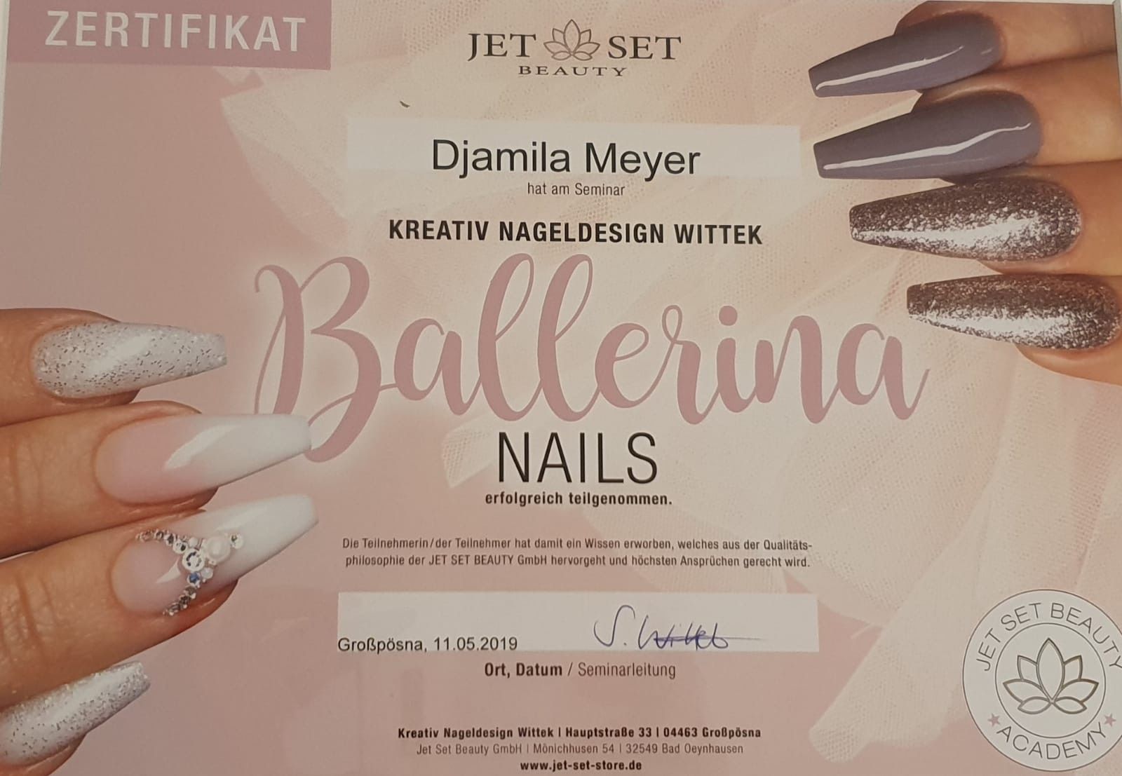 2009: Ausbildung zur Nageldesignerin, Wimpernstylistin, Permanent Make up an der Kosmetikakademie Berlin